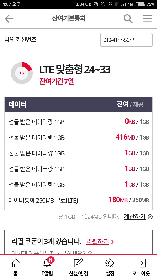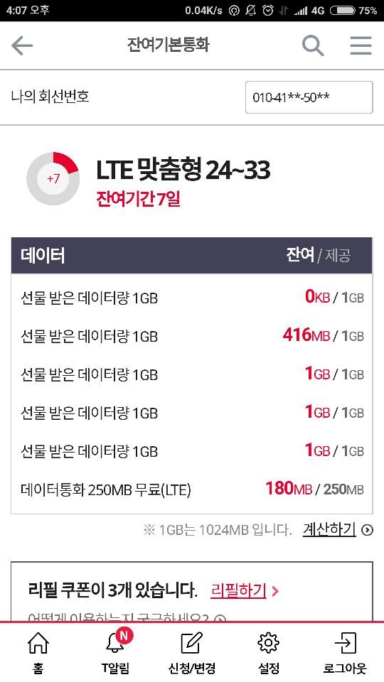 예전 온가족에 착한가족 결합이라 가족간은 무제한이에요 |