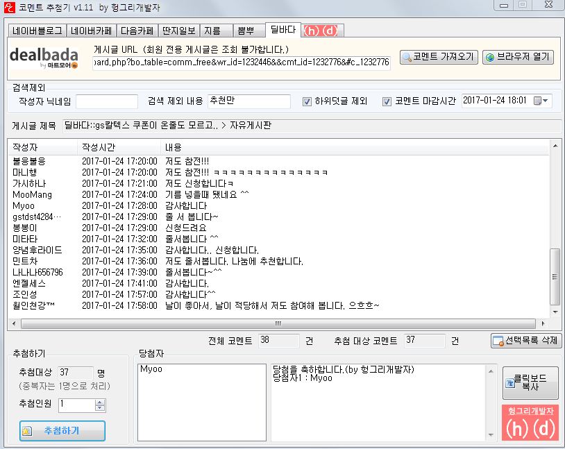 추첨은 18시까지 댓글 다신분중 추첨기로 돌린후