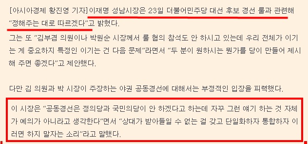 1월 23일 이재명시장 - 경선룰은 정해주는 대로 따르겠다
