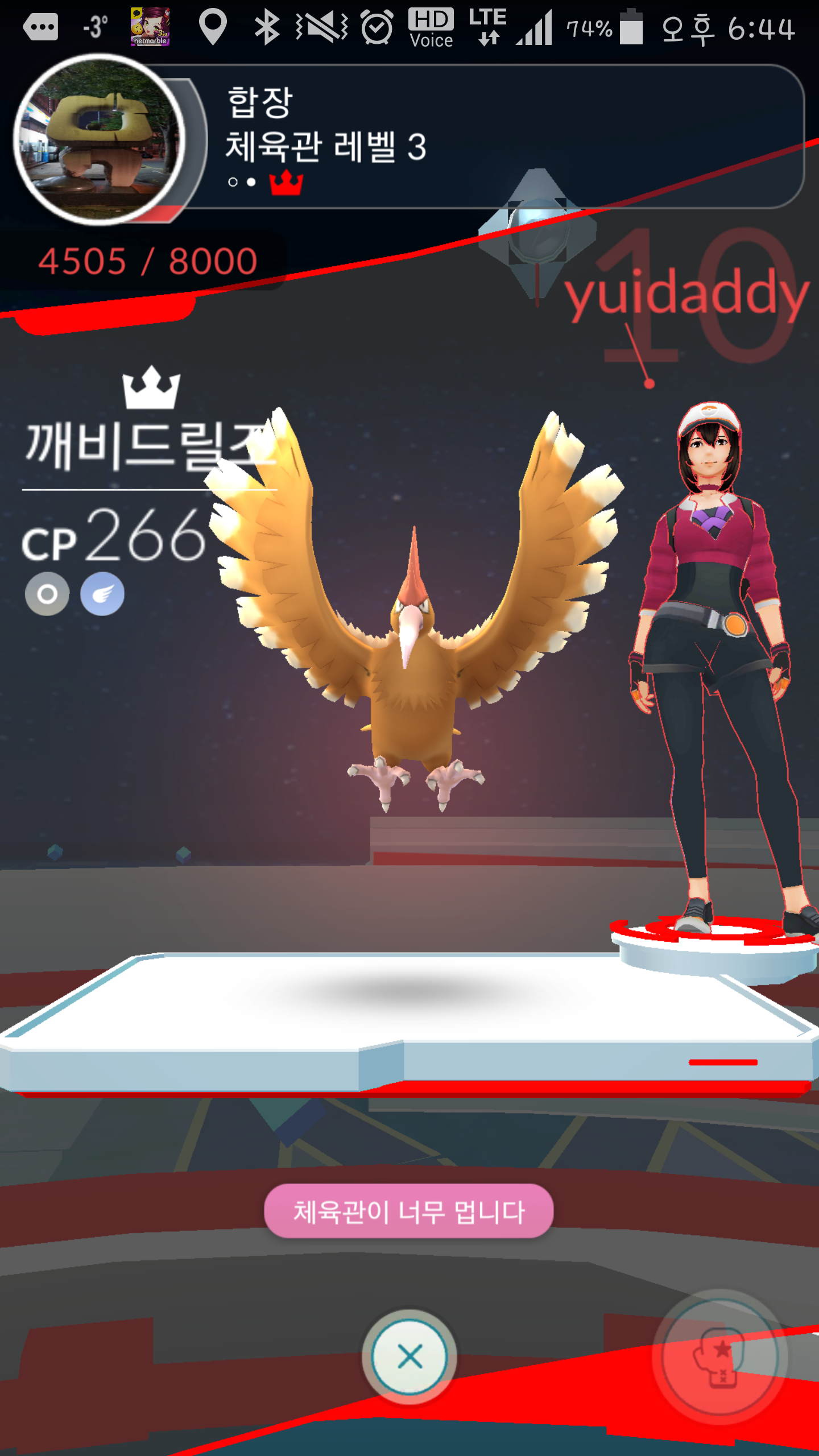 그래도 고수 많더라구요 샤미드 1700에 프테라, 갸라도스 많아서 5분먹고 뺏겼어요 | ||