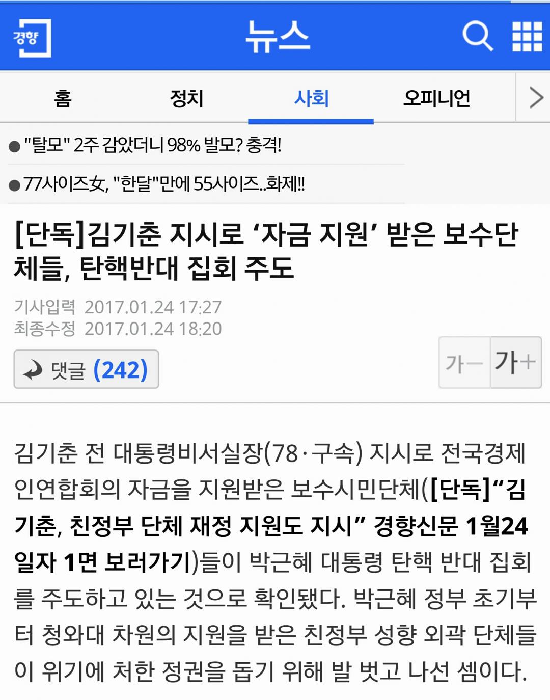 김기춘 지시로 자금지원받은 보수단체들, 탄핵반대집회 주도 > 자유게시판