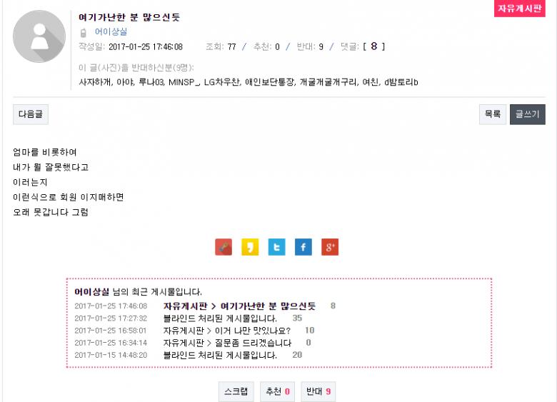 작성일: 2017-01-25 17:46:08 조회: 1,320 / 추천: 0 / 반대: 27 / 댓글: [ 26 ]