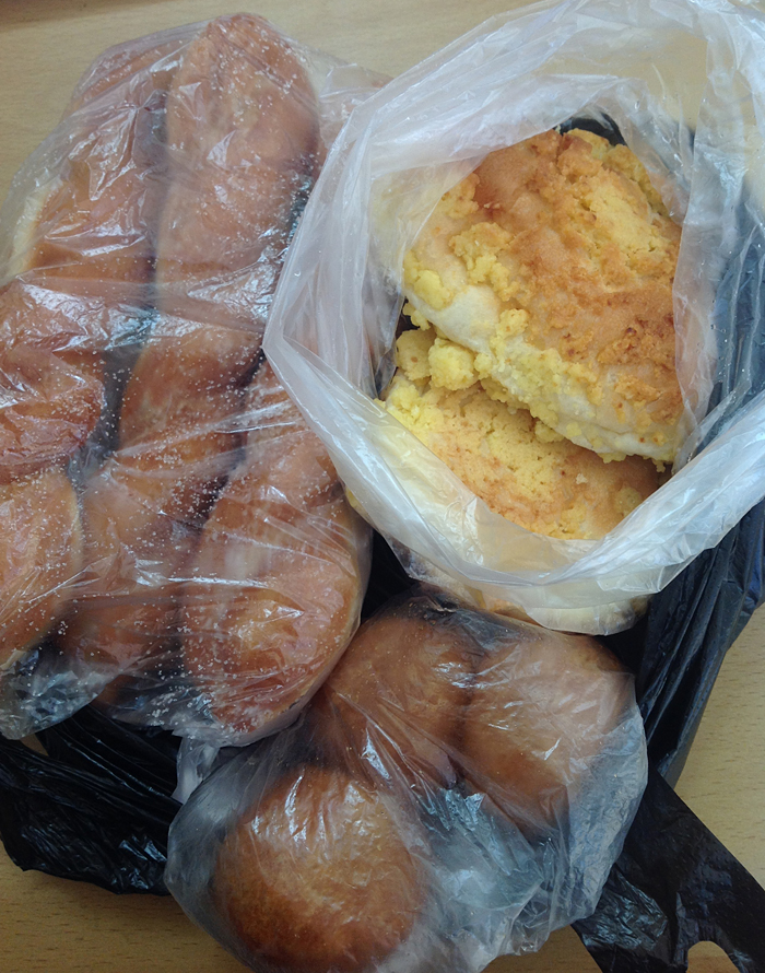 출근하면서 시장빵집에 들러 빵 사왔어요
