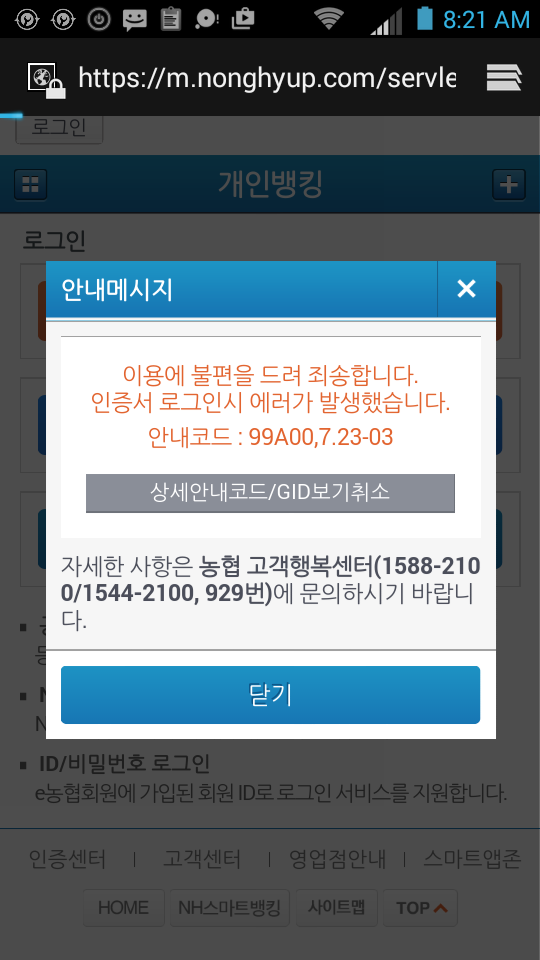 뱅킹이 안 됩니다