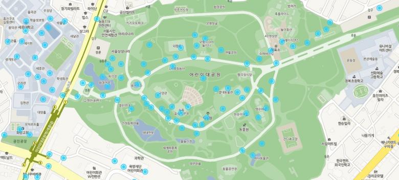 용산 가족공원, 어린이 대공원 등 은 있긴 하지만 밀집도가 안좋은것 같아서
