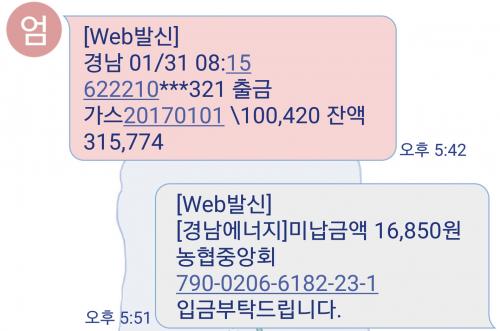오늘 부모님 도시가스 요금의 본인 카드로