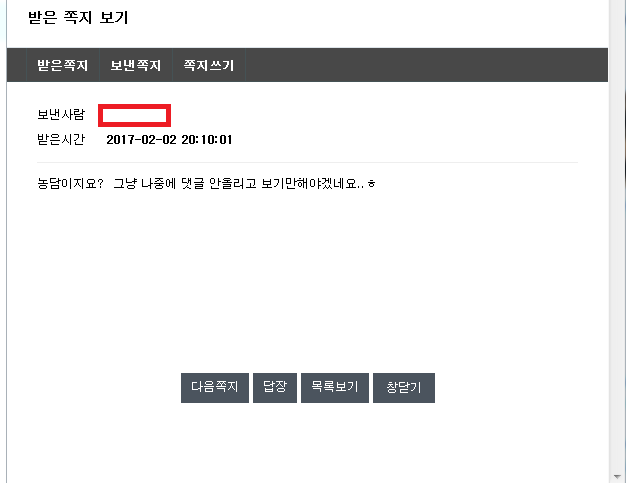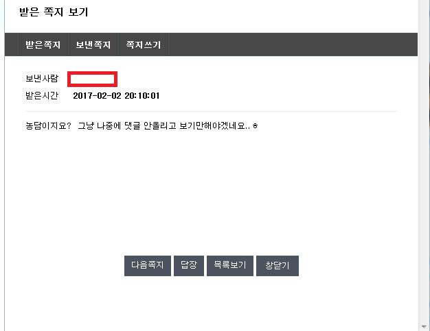가입이후로 딜바다 봇 쪽지외에 처음으로 회원쪽지를 받아보았습니다.