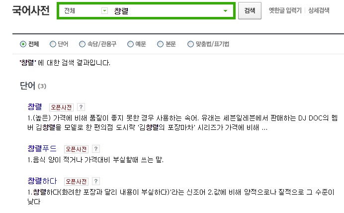 정식 국어사전은 아닌데요, 네이버 국어사전 검색에 나오니까 좀 웃겨서 올려봤어요 | ||