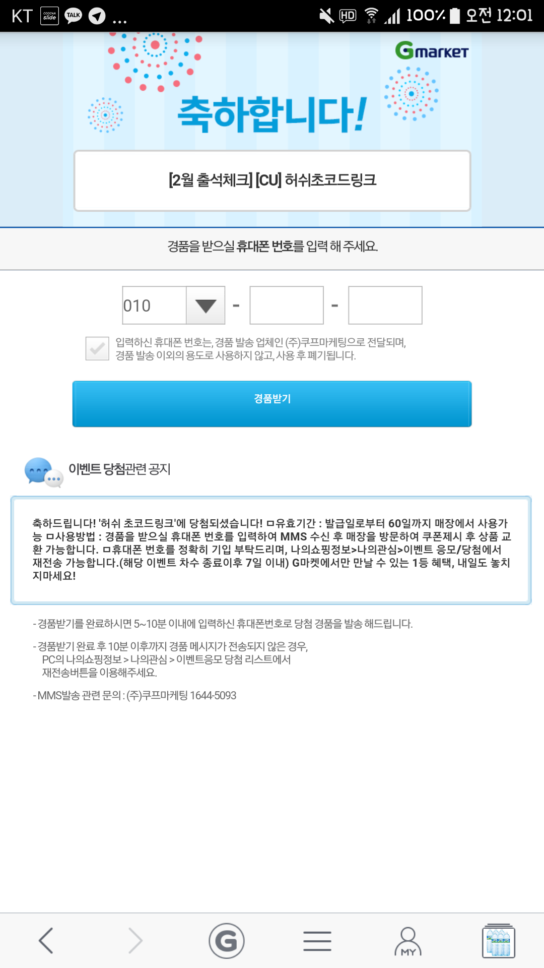 g마켓 출석체크 당첨이네요 ㅋㅋㅋ > 자유게시판