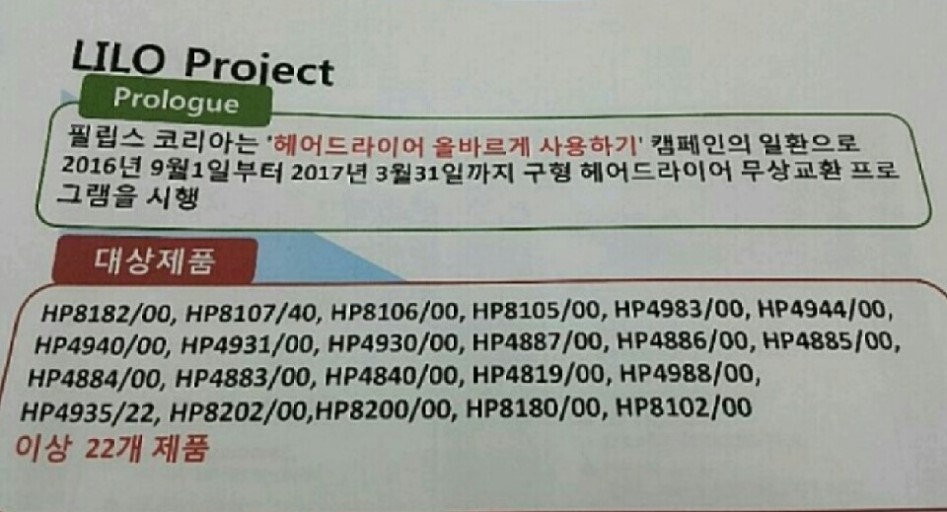 필립스 해당되는 구형 드라이기 무상교환 해준데요