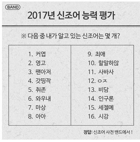 2017년 아재 판독 능력 평가입니다.