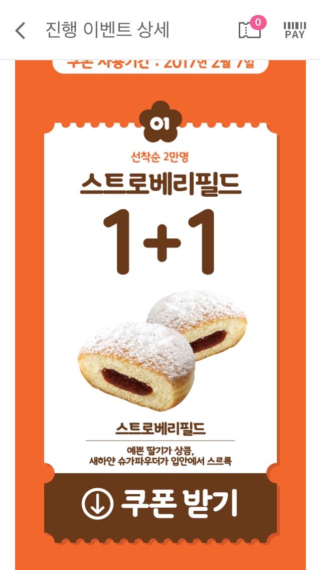 오늘자 해피앱 던킨 1+1 쿠폰 받으세요