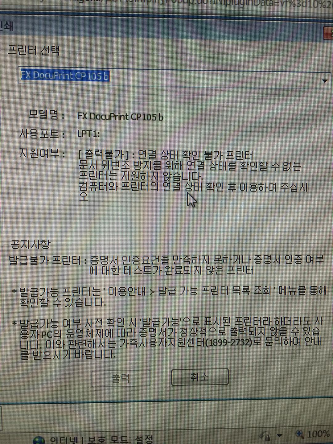 전자민원은 가상화 환경으로 연결된 프린터나 네트워크 프린트로 출력이 원래 안되요. |