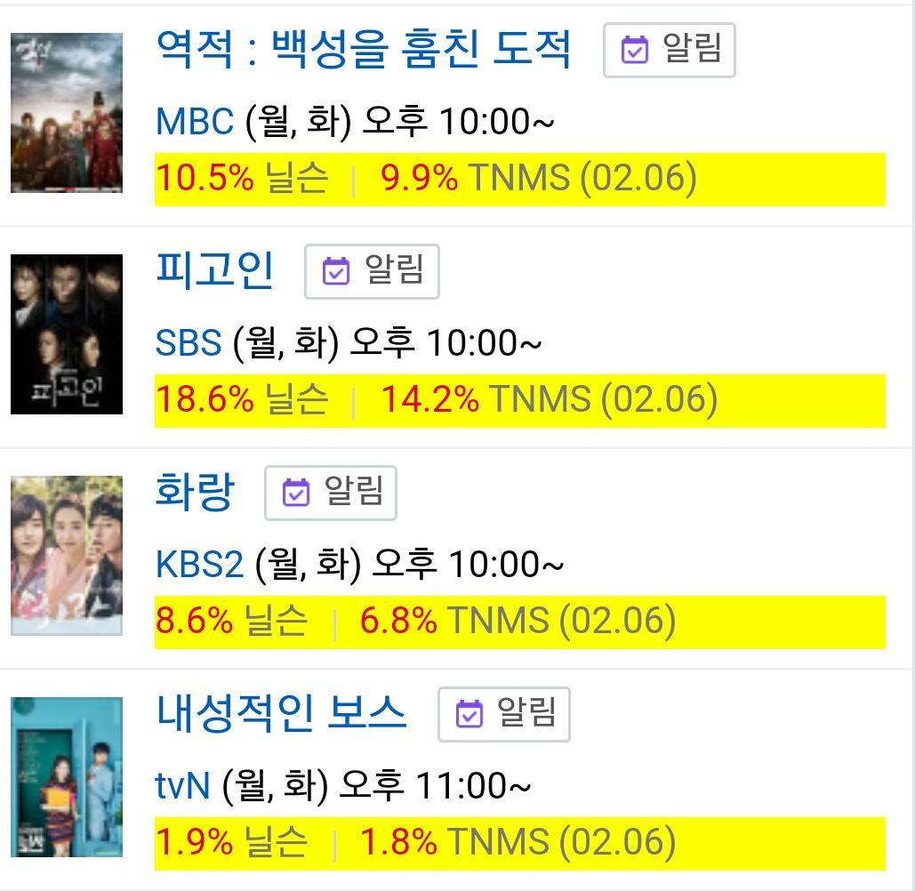 어멋!  피고인이 역적 보다 훨 높네요?