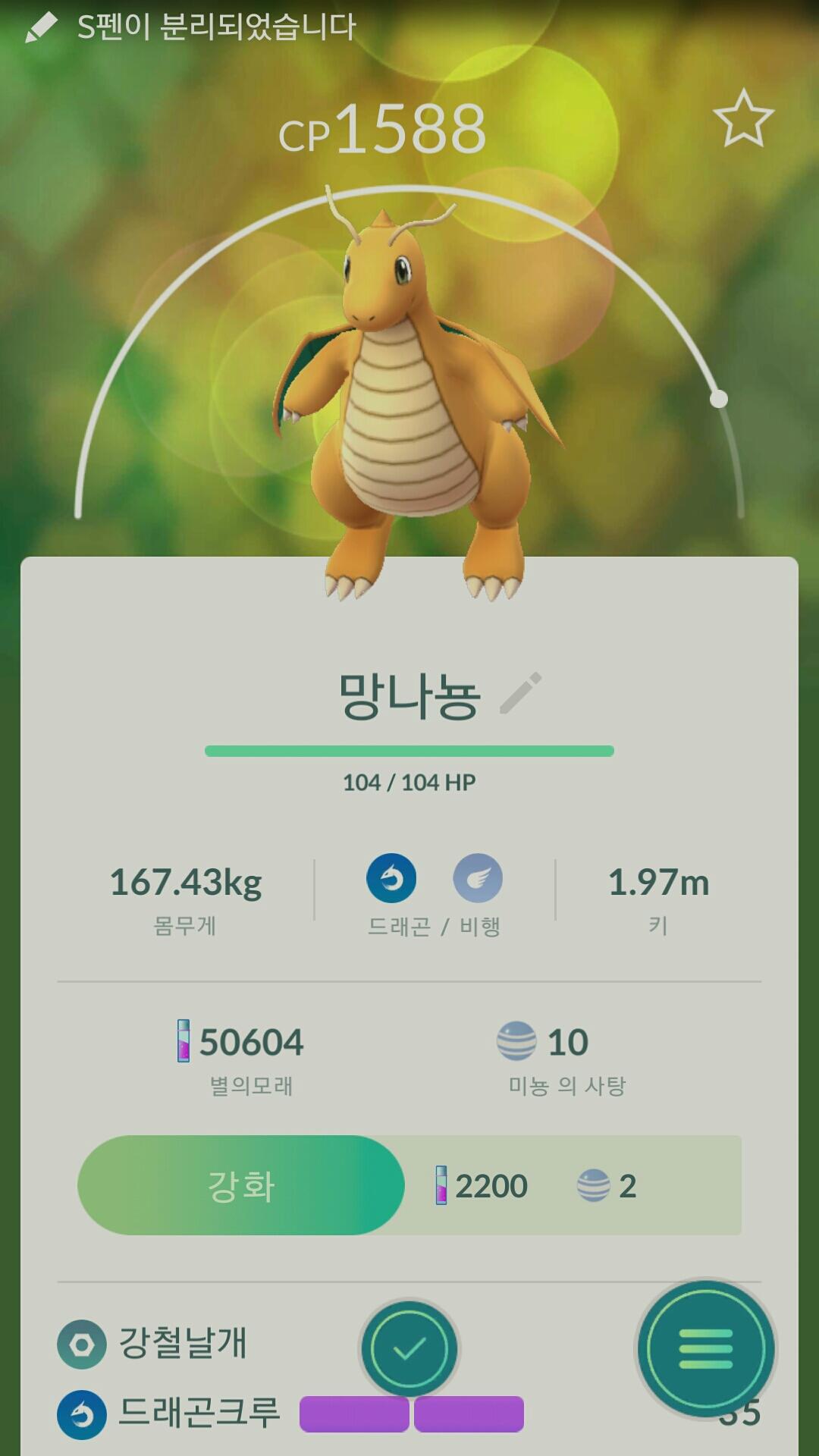 한방에 잡혀서 더 놀랐어요ㅠ 새끼망나뇽 진짜 안잡혔었는데ㅠ