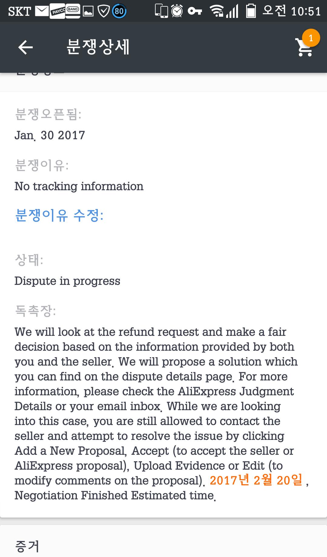 일반적으로 구매자보호기간 끝나기전에 물건을 못받으면 디스풋을 겁니다만 이번에는 구정끼여서 몇시간 넘기고 디스풋을 걸었습니다.