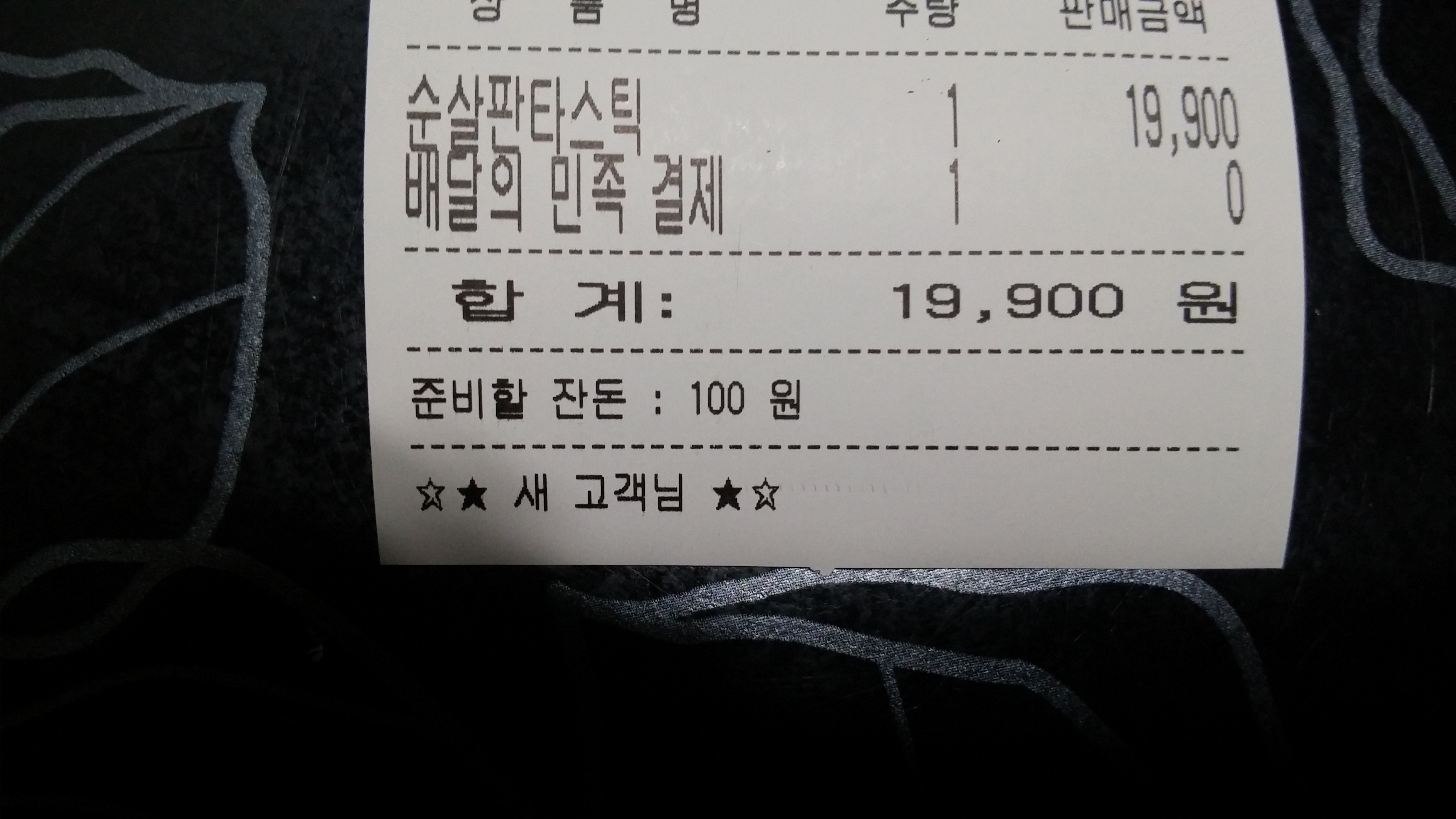 영수증 버릴려는데 주문자란에 새고객님~~