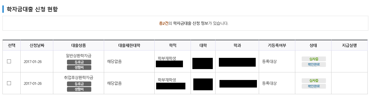 전 학비대출은 안 했고, 생활비대출만 신청 하려고 했는데 뭘 신청을 잘못 한건지...;;