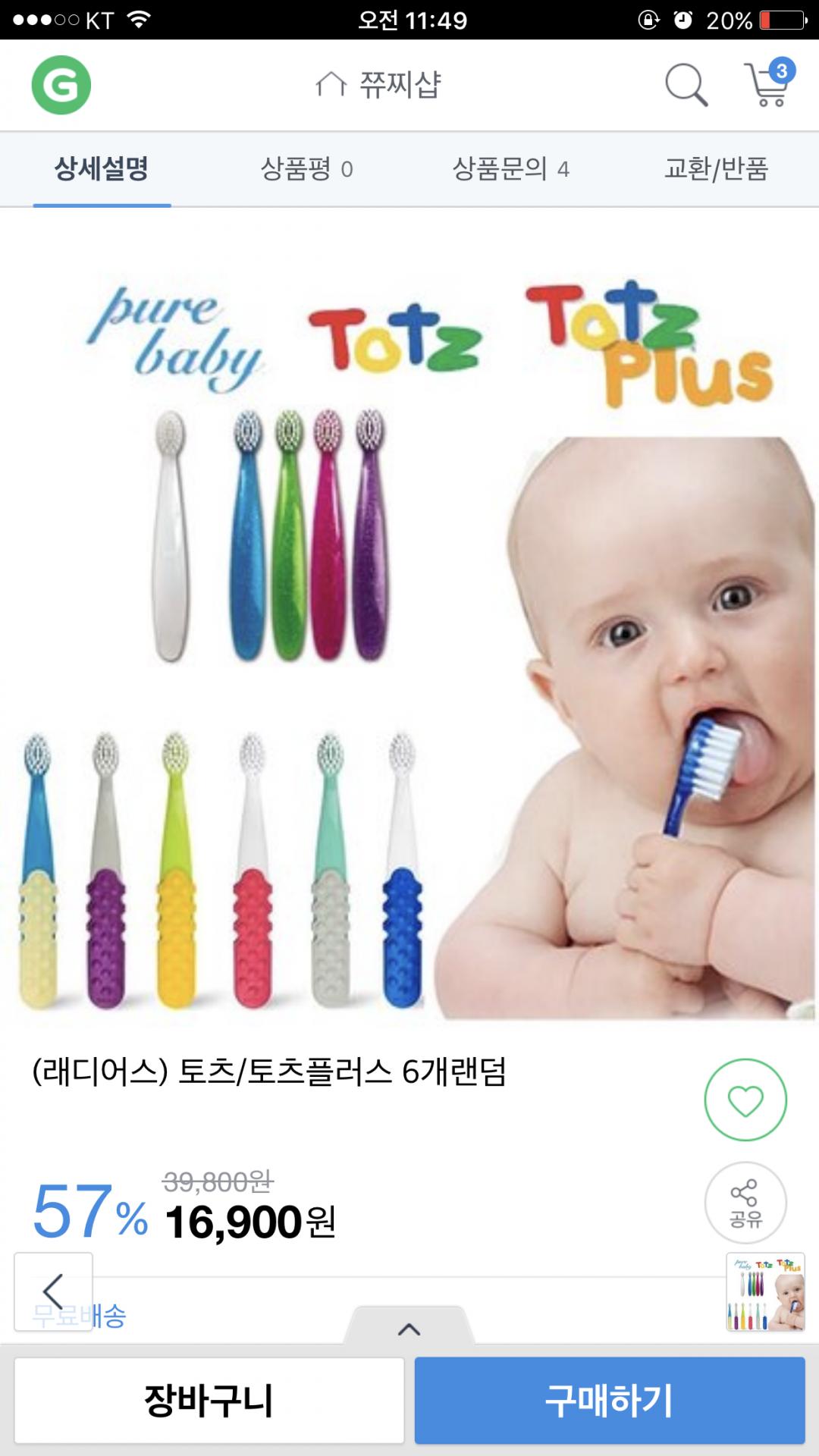 아이 칫솔은 주로 아이허브에서 구매하는데 거긴 개당 3,411원