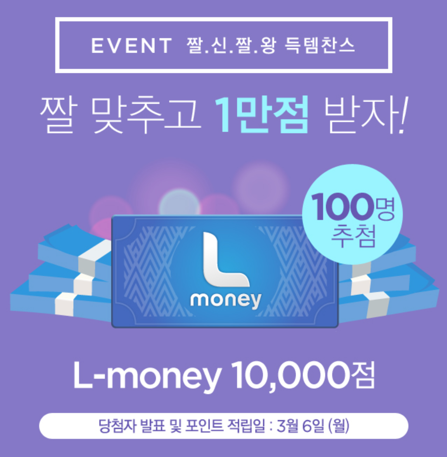 22일까지이고 문제 세개 중 정답 맞추면 100명 추첨해서 L 머니 1만점 줍니다.