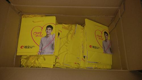 실제로 완전 블링블링 샛노란색 쇼핑백입니다... 김수현 얼굴이 똬악 레모나로고가.... 실제 사이즈는 두번째 사진