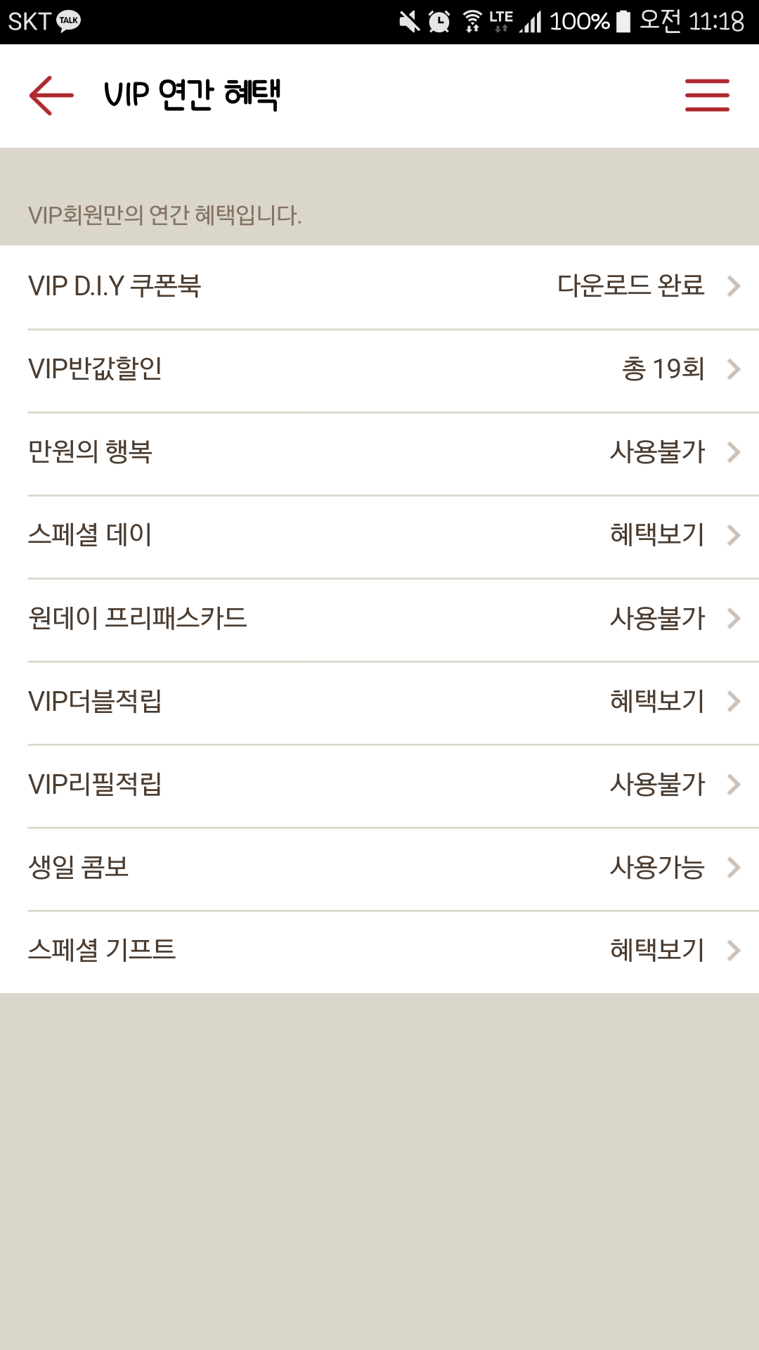 사용했는데 사용가능으로 나오네요. 사용여부가 나오는게 아니라 해당아이디가 해당혜택을 받을수 있는아이디인지만 나오는것같습니다. 예를들면 만원의 행복같은경우 svip 아이디는 사용가능/ 그외의 아이디는 사용불가입니다 |