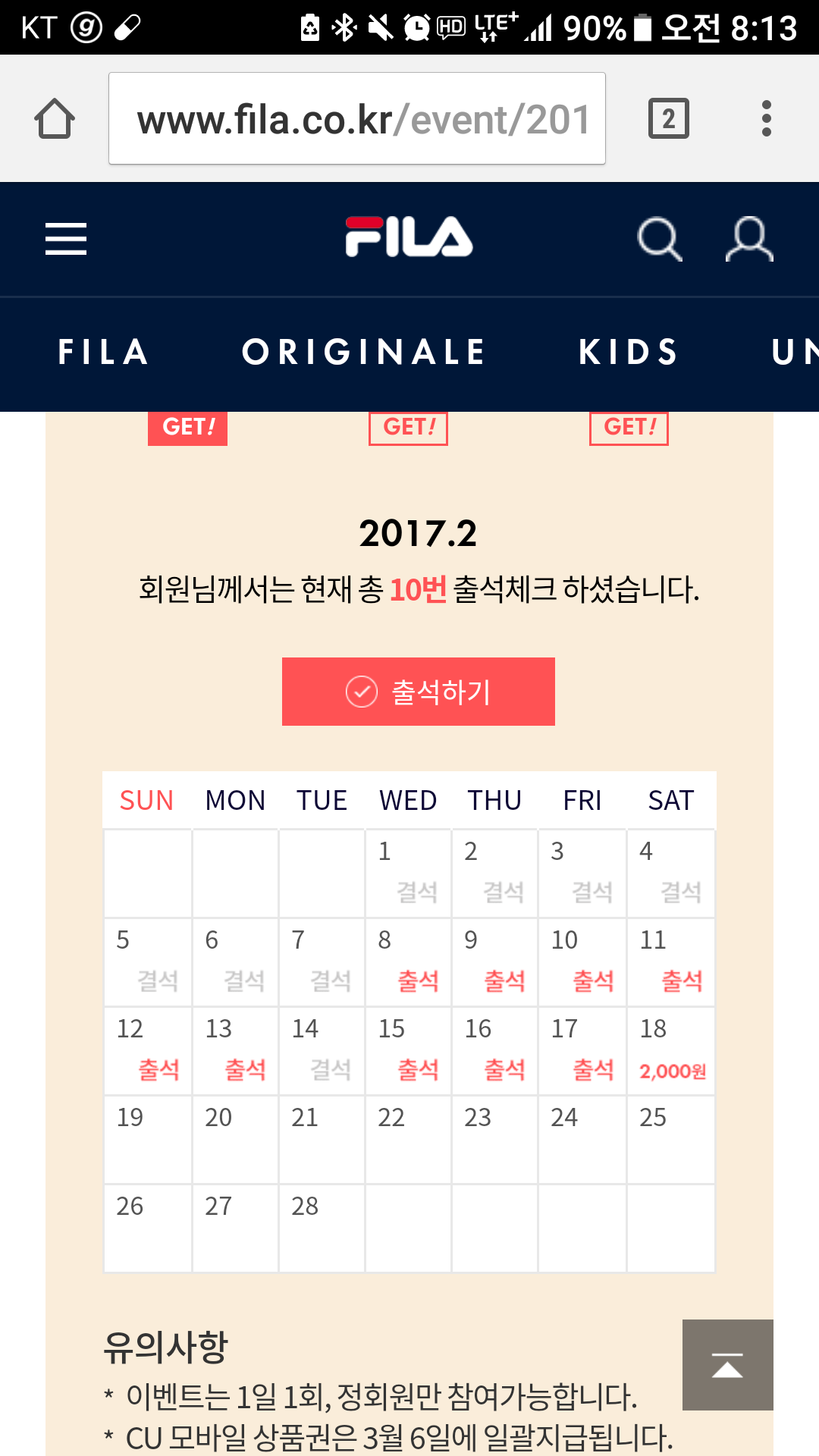 fila출석 2000원 완성