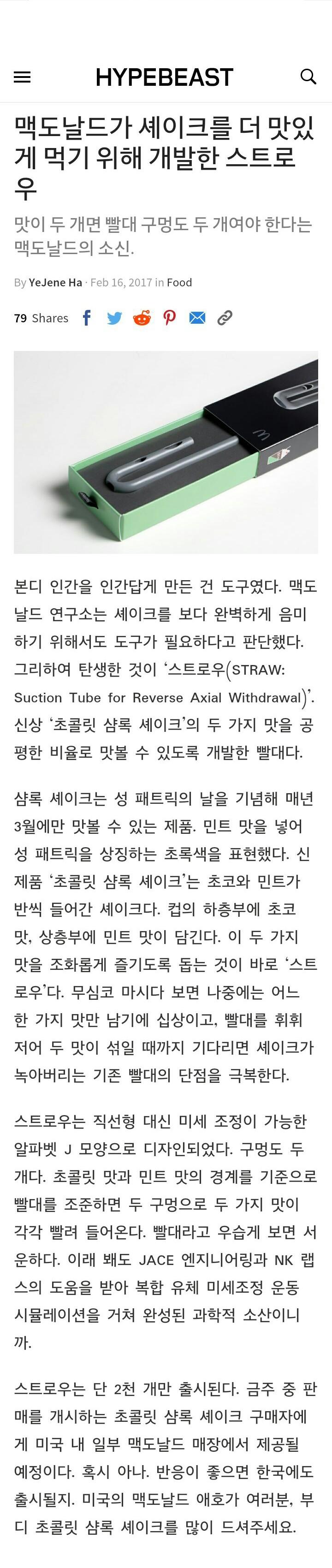 기사본문https://hypebeast.com/kr/2017/2/mcdonalds-straw-chocolate-shamrock-shake