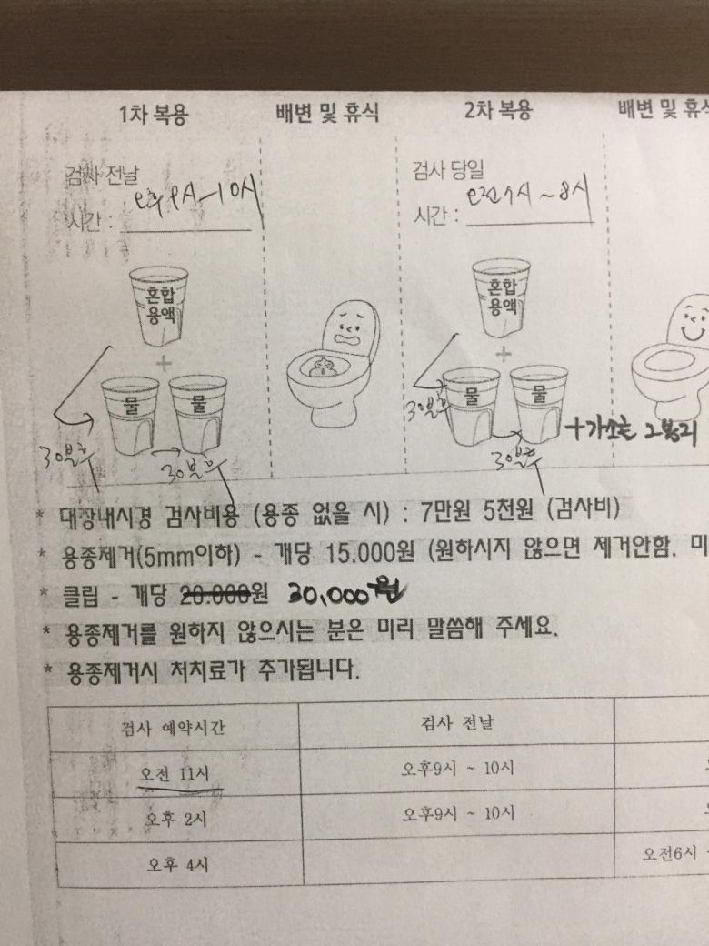 물은 많이 먹는게 좋다고 하네요. 그만큼 화장실을 자주 가기는 하지만 완전 깨끗한 상태에서 검사할 수 있어요. 먹던 중간에 화장실가기 싫어서 물을 먹기 싫을 때가 있는데요. 그래도 드시는것이 좋아요 |
