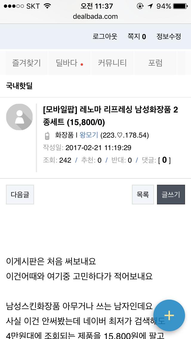 딜바다 메인에서 국내핫딜 제목을 누르면