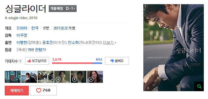 저는 내일 존윅2 4dx 랑 미인어 2개 대기중입니다 싱글라이더는 멜로쪽에 가깝죠 |