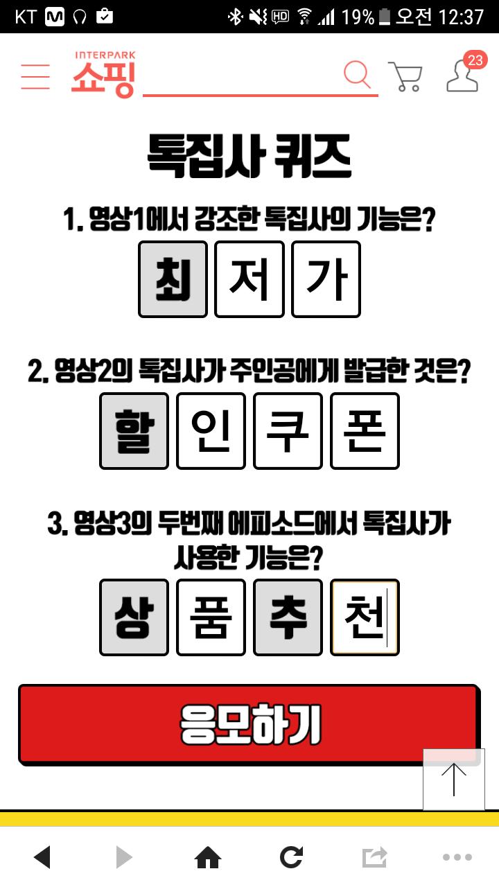 인터파크쇼핑앱 톡집사 이벤트 > 자유게시판