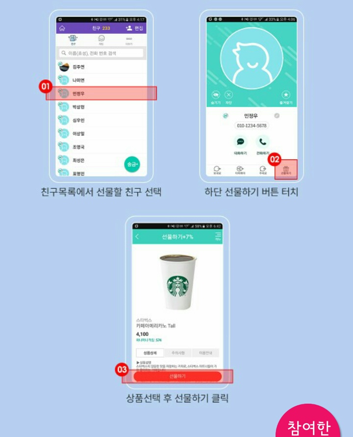 자신의 전화번호를 선택하고 선물하기 진입해도,