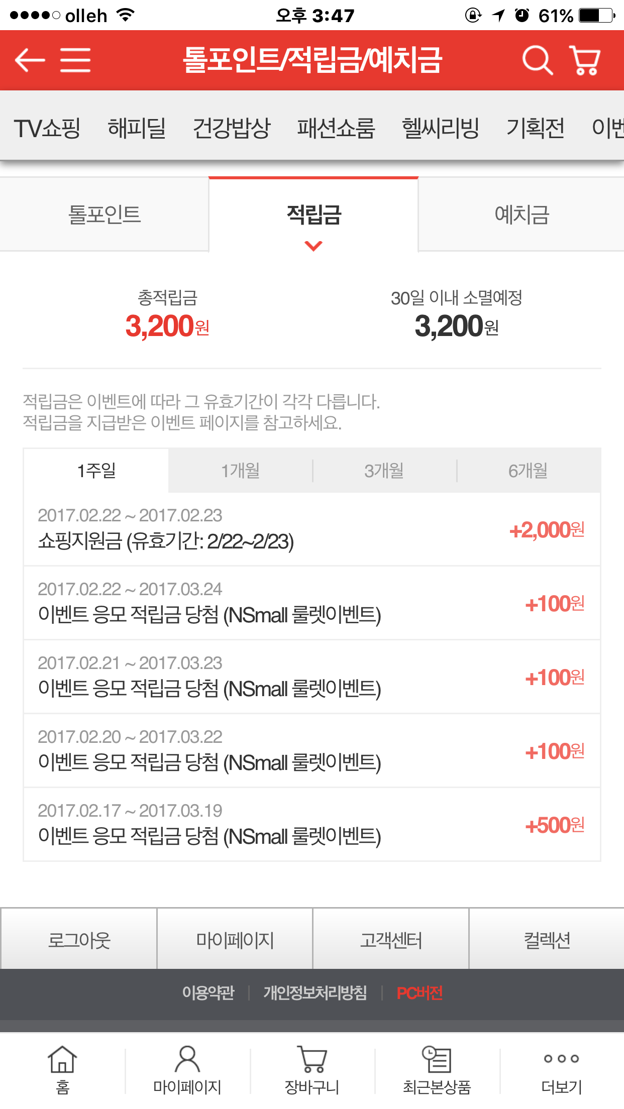 저는 nsmall 적립금이 단 한번도 없네요 ㅠㅠ |