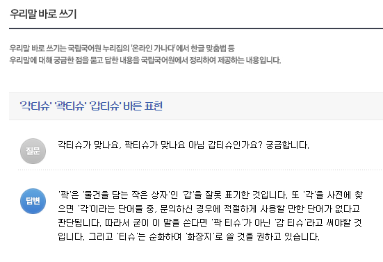 곽티슈가 옳은​말일까요??