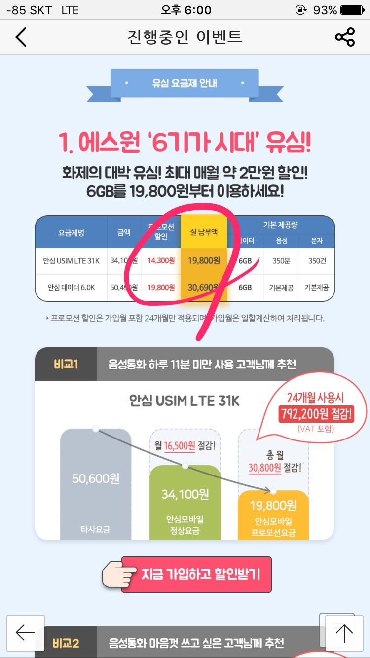skt에서 알뜰로 변경하려고 하는데, 가격 괜찮네요. |