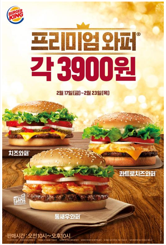 프리미엄 버거 3900원 행사 오늘까지예요.