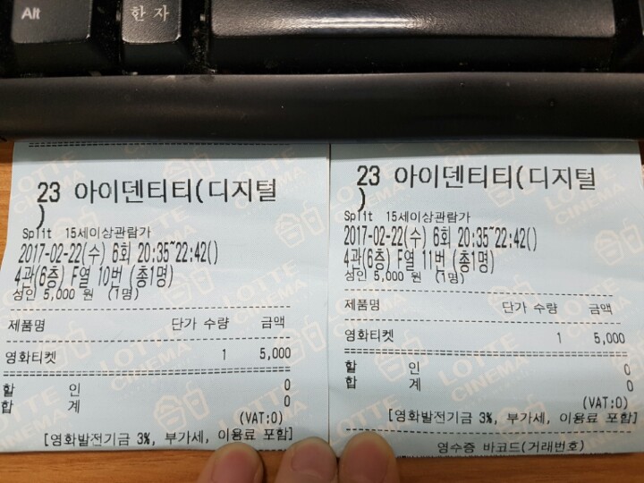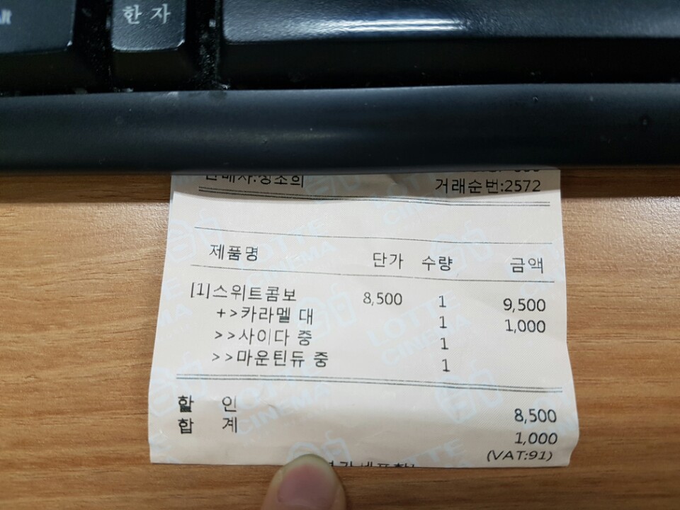 콤보 사진을 못찍어서 ... 영화표랑 매점 영수증으로 대신 올립니다 ㅠㅠ