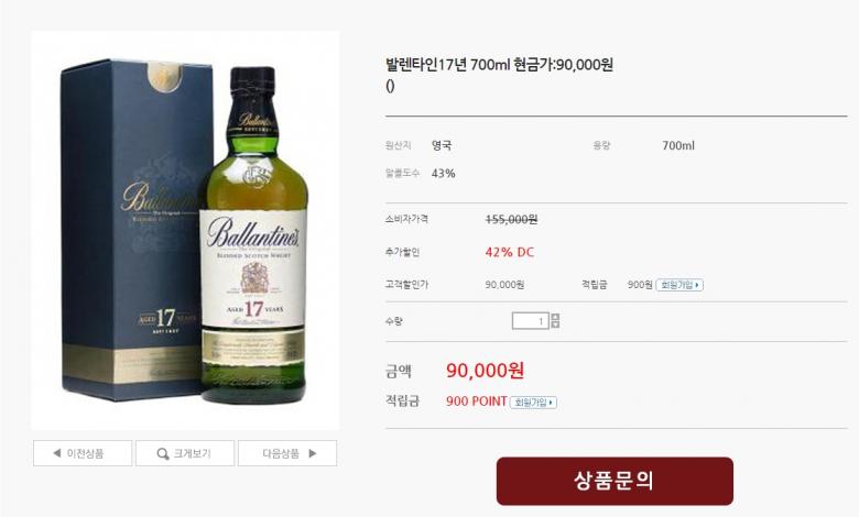 혹시 주류백화점같은데 발렌타인 17년산 보통 얼마쯤하는지 아시는분 > 자유게시판