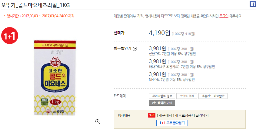 네 오프라인 동일 행사입니다. 500g은 매대 쿠폰 덕에 더 싸게 살 수 있구요 |