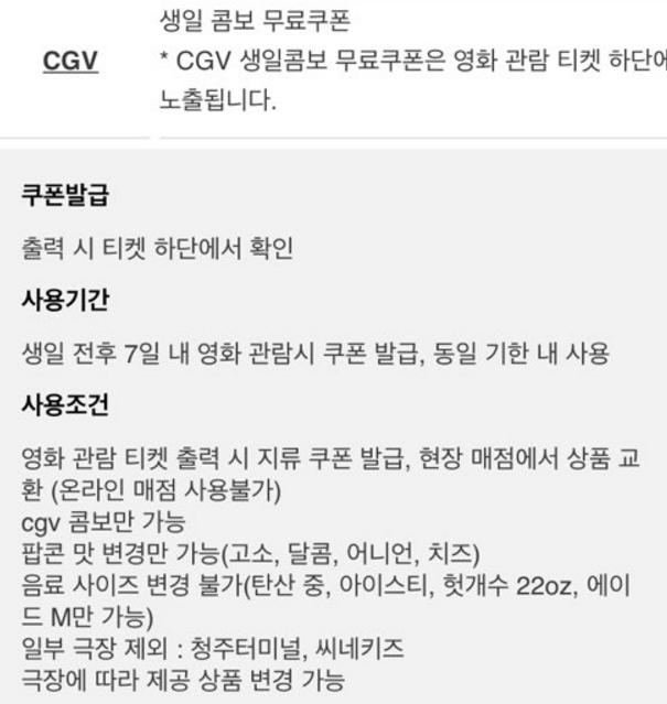생일쿠폰이 그냥 제시하면 음료 팝콘 그냥주는게 아니라 콤보구매시 사이즈업그레이드인가요?