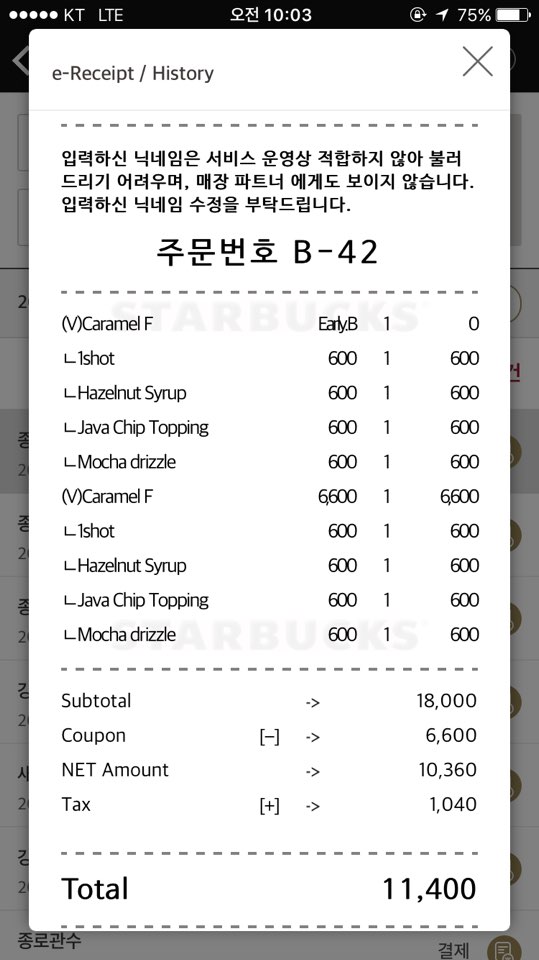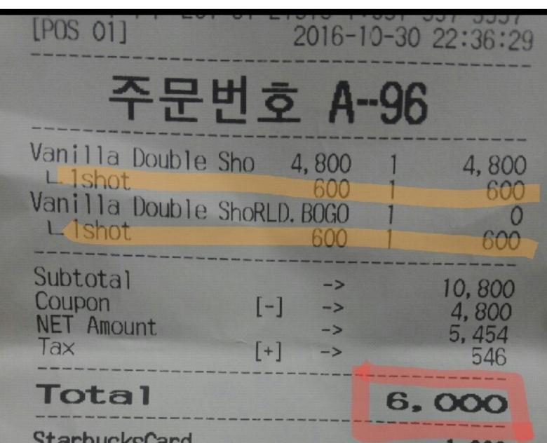 제가 5400원 내야할껄 6000원 낸적있어서 스벅코에 문의 후 답변 받은거 첨부합니다