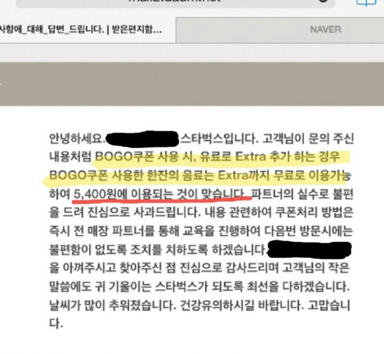 예전에 보고쿠폰쓸때 파트너가 아니라고 빡빡 우겨서 돈내고 추가한거 한잔에만 받고 고객센터 문의했거든요 매장에서 잘못한거라고 시정하겠다고 답변왔었어요