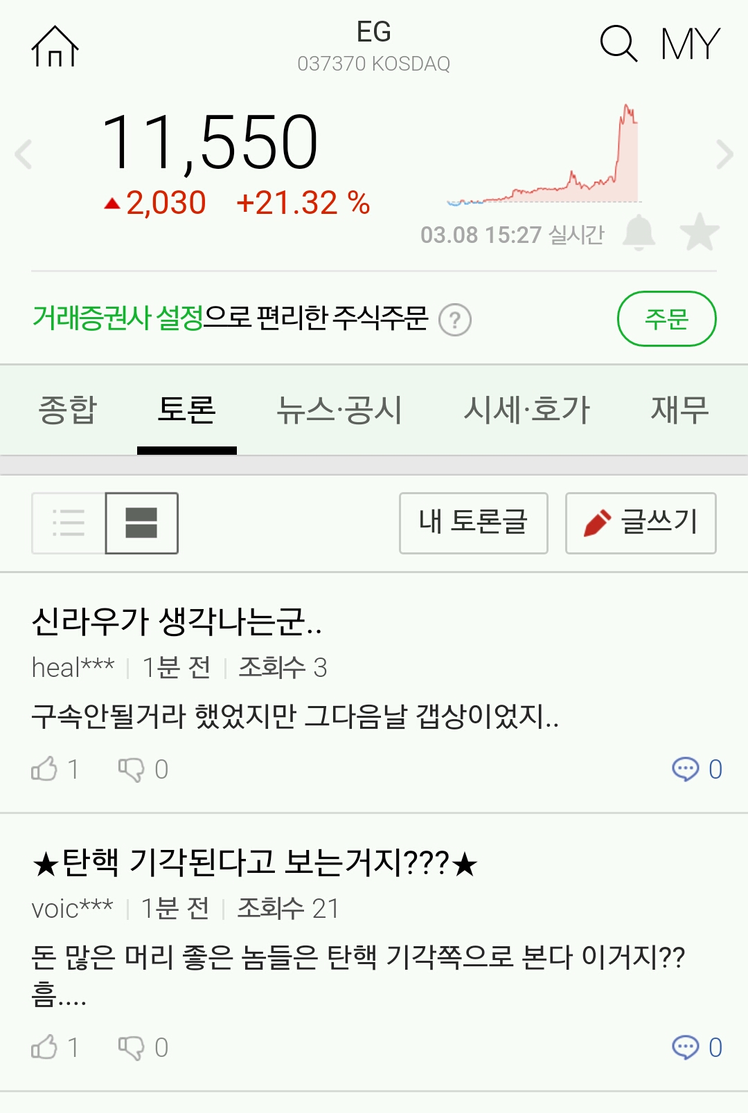 대통령과 관련됐다고 주가가 뛴다는것 자체가 아직도 정경유착의 끈이 끊어지지 않았다는 증거.. ㄷㄷㄷㄷ |