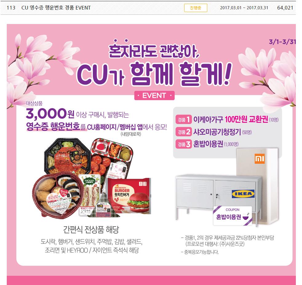 대상 상품 3천 이상 사면 이벤트 응모 가능하네요.