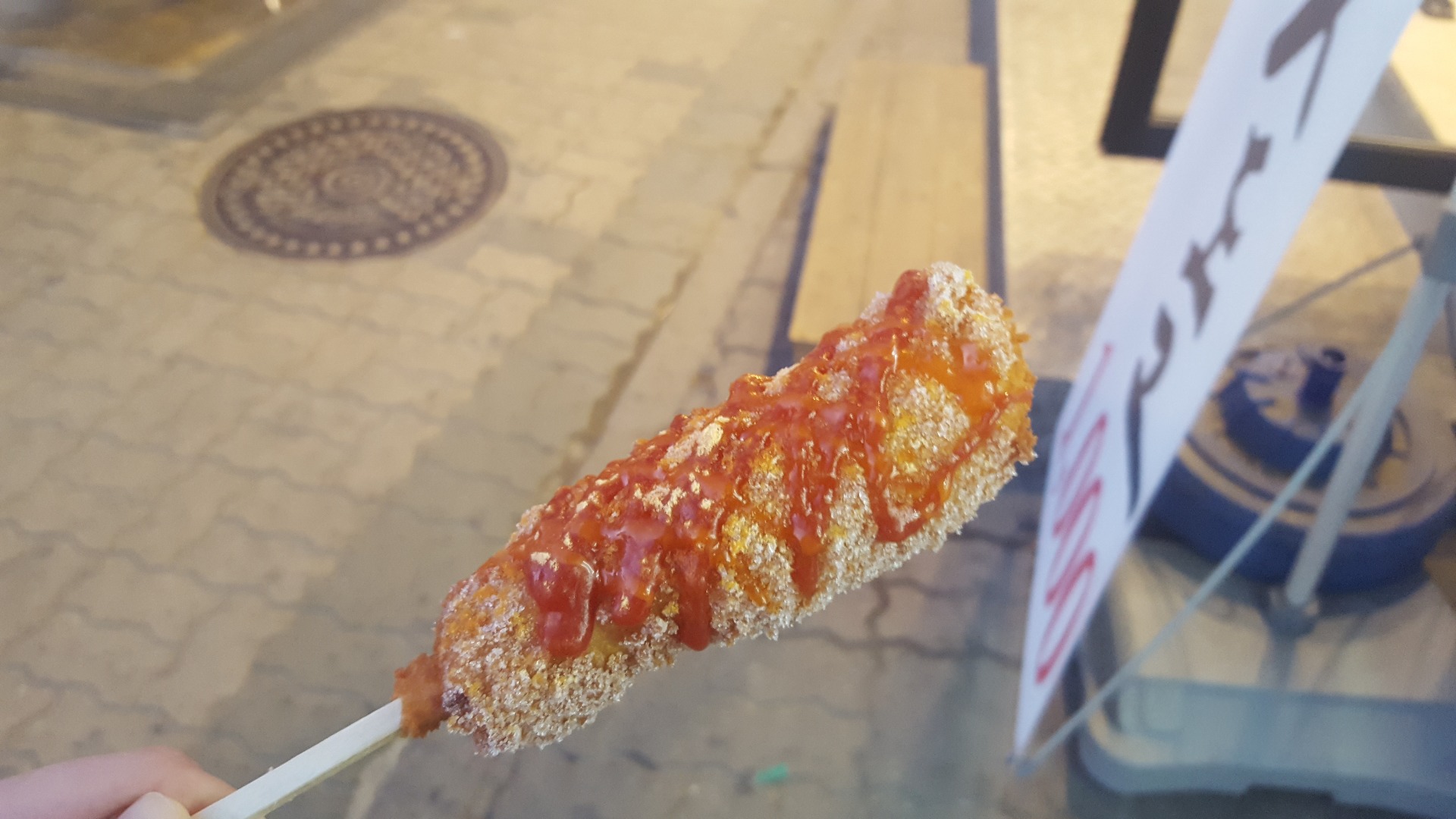 저도 이틀전에  모짜렐라로먹었는데 괜찮더라구요..줄서서먹어야했는데 바로앞에옆에 핫도그 가게가 두개생기고 하나더 공사중이더라구요.가격도메뉴도 똑같던데 청춘. 아리랑 이더군요..