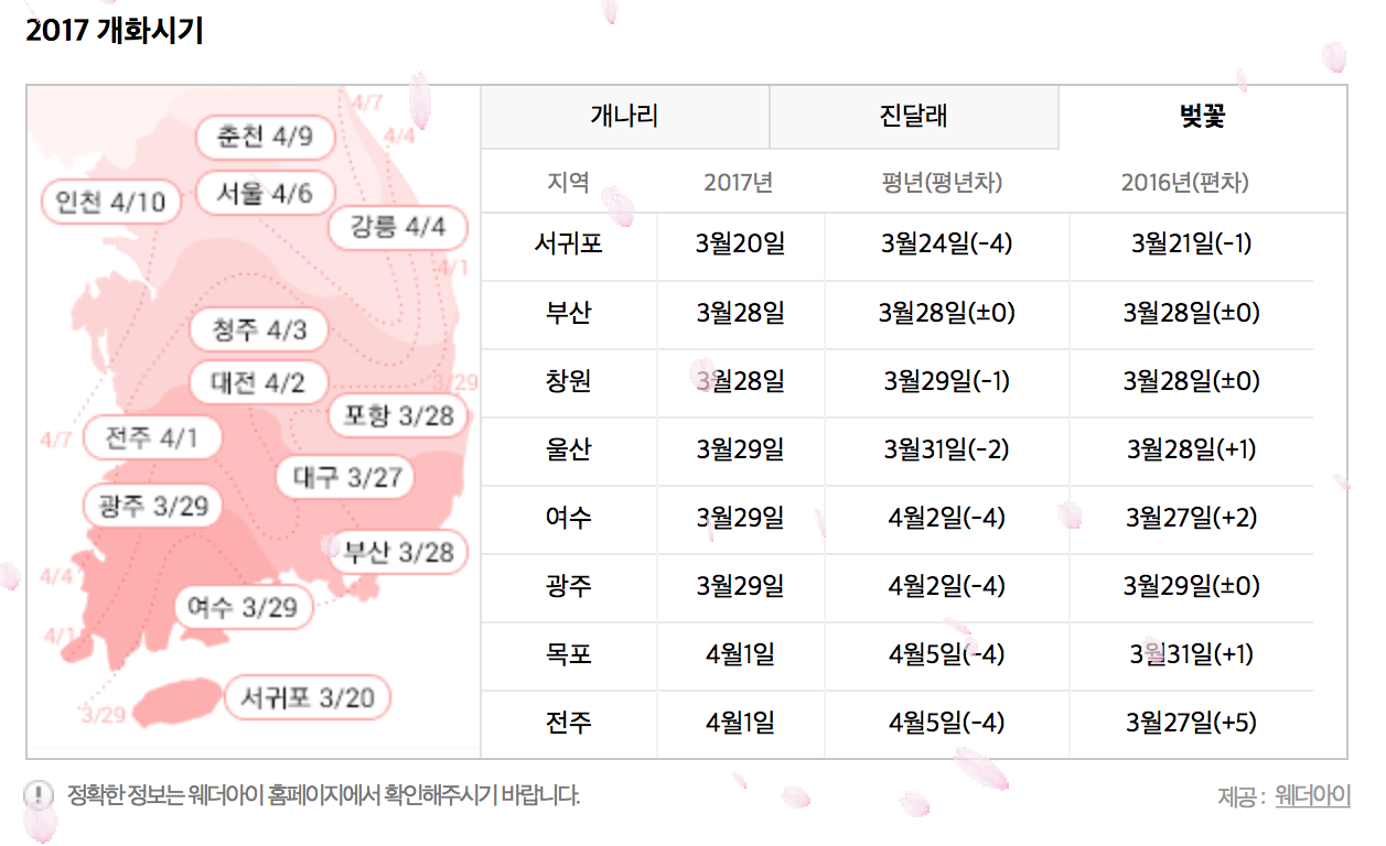 춘천은 4월 9일이네요ㅎㅎ