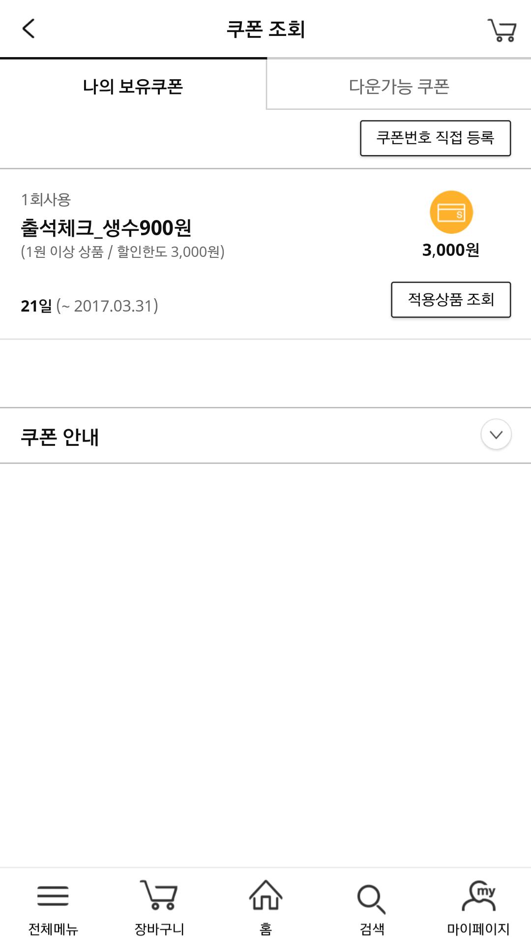 삼성카드 쇼핑 출석체크 쿠폰 들어왔어요
