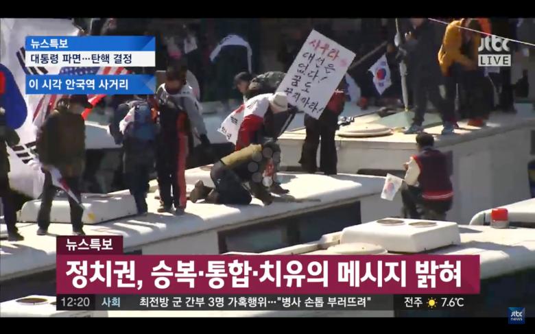 때려잡아라 미국에선 쏴도된다 소리하더니 지들이 답답하니 버스 올라가고 태극기로 때리네요