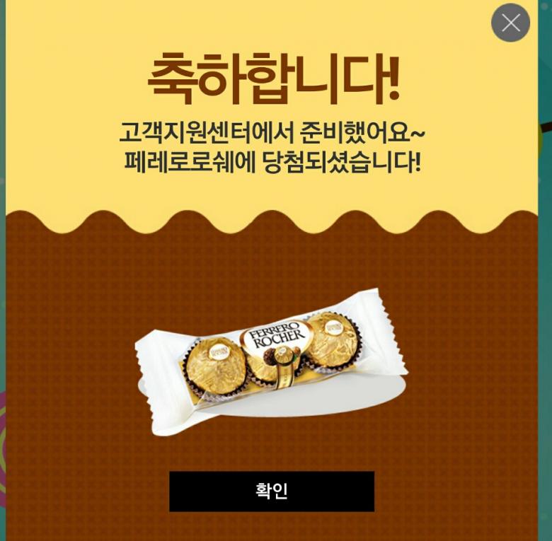 회선3개 연달아 스벅1 페레로로쉐2 당첨인데